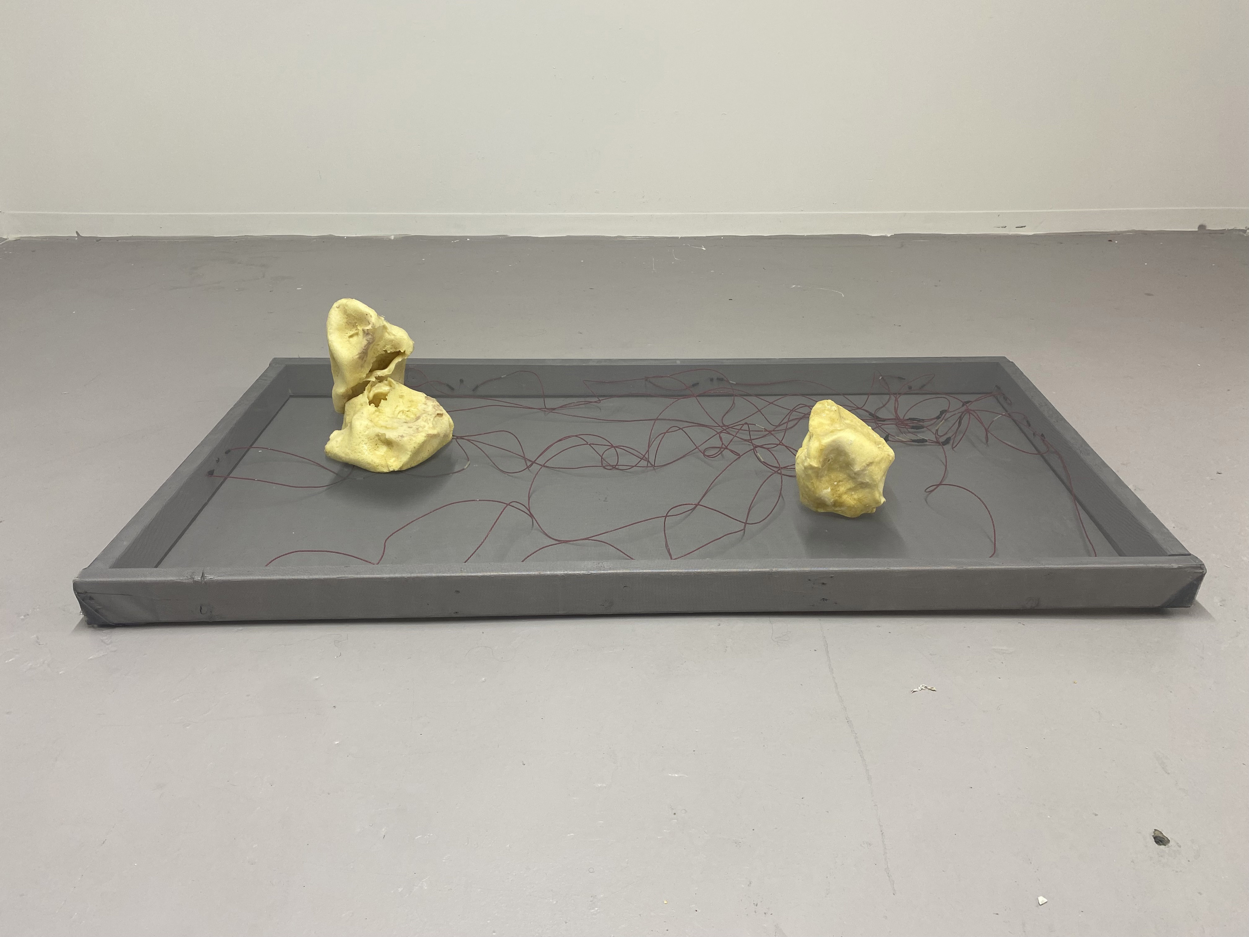 Biography: Alyssa Grey works intuitively to create interdependent networks whereby units rely upon each other in order to function as a means of support for isolated moments in the work. She creates a conversation between the the work and the spaces in which they are residing. Grey experiments with industrial and organic materials to find new and unlikely combinations of both. Alyssa Grey attended University of Louisiana at Lafayette and received her Bachelor’s of Fine Arts in Sculpture in 2020. She then went on to obtain her Master’s Degree in Sculpture at Boston University in 2024. Grey currently lives and works in Huntsville, AL where she is an Art Instructor at Alabama A&M University. As a sculptor interested in the formal language of materials and their interactions within space, my creative focus toggles be ween art objects and their modes of display. Drawing inspiration from traditional uses of pedestals, I create interdependent networks whereby units rely upon each other in order to function as a means of support for isolated moments in the work. Fueled by the never-ending question, “what if?” I experiment with industrial and organic materials to find new and unlikely combinations of both. These personally inflected and playful objects draw from the “do-it-yourself” expediency of lower-middle-class home projects which often entails crafting my own tools and equipment to jerry-rig problems. These soiled structures form quick-fix foundations while stubbornly (if tenuously) clinging to kindred objects that can only be described as coping mechanisms. I create double meanings and puns with my material choices in order to imbed poorly made jokes within the larger sculptural systems. These jokes always fall just short of a punchline - leaving them confused and alone; feelings that echo throughout the work, with each elaborate piece dismissed and left in silence.